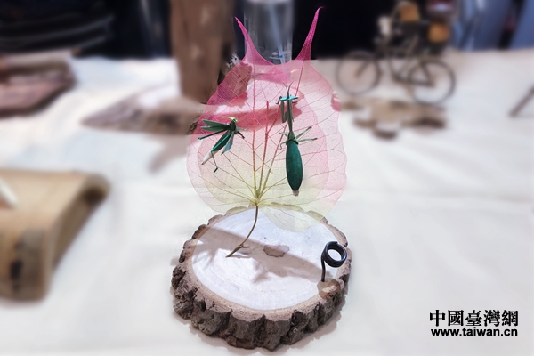 臺(tái)灣南投縣樹藝工坊藝術(shù)家李永謨向記者展示他的藝術(shù)作品。(中國(guó)臺(tái)灣網(wǎng) 趙苗青 攝)