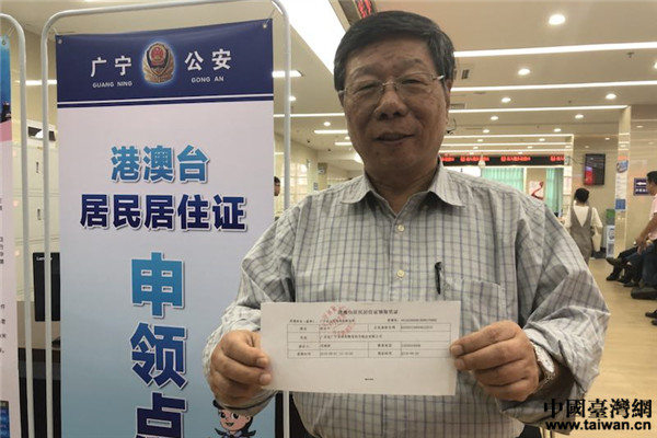 林谷豐展示申領(lǐng)回執(zhí)。(圖片來(lái)源:肇慶市臺(tái)辦)