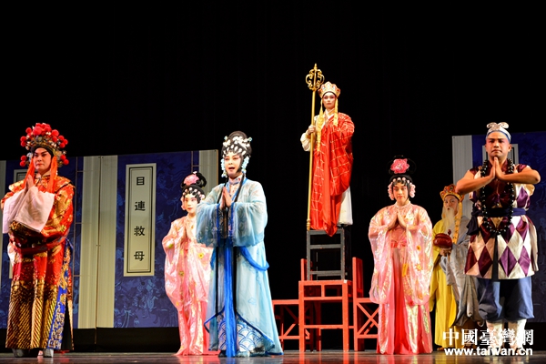 中國(guó)臺(tái)灣網(wǎng)9月7日南寧訊 近期,廣西南寧市民族文化藝術(shù)研究院(以下稱南寧市藝研院)演職人員一行15人首次攜南派傳統(tǒng)粵劇《目連救母》赴臺(tái),與臺(tái)灣戲劇學(xué)院的12名同學(xué)合作,在南投縣演藝廳、新北市力行福德宮戶外露天舞臺(tái)演出,共同演繹中華傳統(tǒng)“百善孝為先”的感人故事,受到當(dāng)?shù)孛癖姷臒崤酢?/p>
