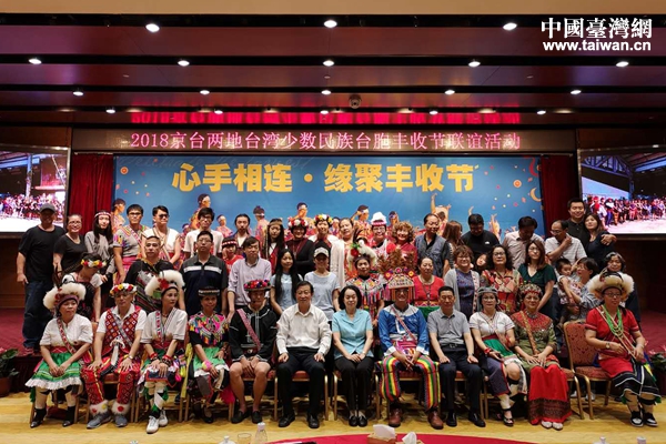 京臺(tái)兩地臺(tái)灣少數(shù)民族臺(tái)胞合影留念。(中國臺(tái)灣網(wǎng) 郜利敏 攝)