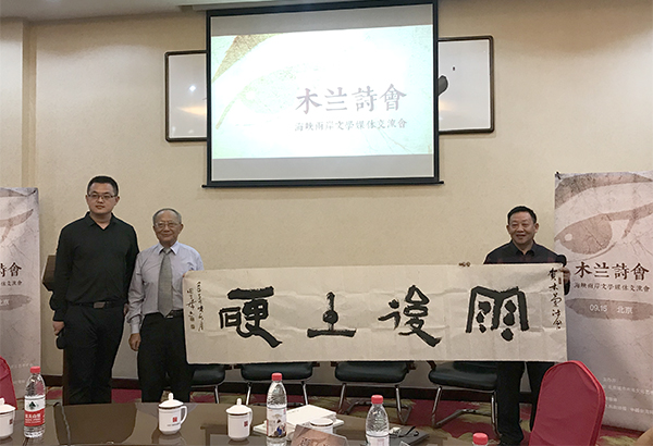 中國(guó)臺(tái)灣網(wǎng)9月15日北京訊 (記者 普燕) 由臺(tái)北市青溪新文藝協(xié)會(huì)發(fā)起,北京城市未來文化藝術(shù)中心主辦的木蘭詩(shī)會(huì)暨海峽兩岸文學(xué)媒體交流會(huì)15日在京啟動(dòng)。兩岸50余位詩(shī)人作家、學(xué)者教授齊聚,以詩(shī)會(huì)友,共同探討中國(guó)詩(shī)歌文學(xué)的創(chuàng)作與發(fā)展,增進(jìn)海峽兩岸文化界交流,共同促進(jìn)中華民族文學(xué)文化傳承和發(fā)揚(yáng)。