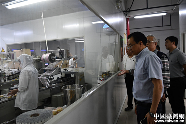 調(diào)研臺資企業(yè)成都好家鄉(xiāng)食品有限公司。(圖片來源:四川省臺辦)