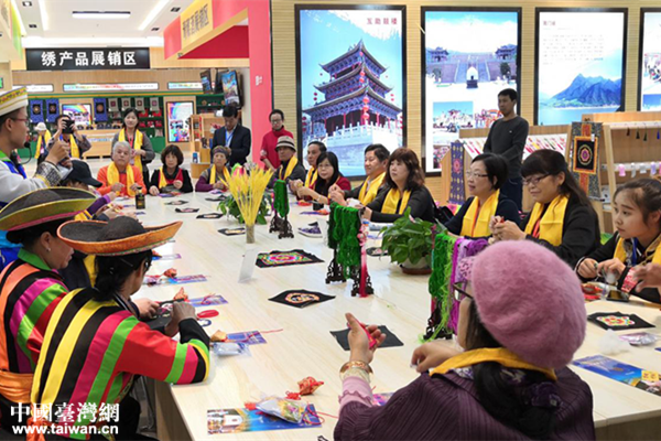 體驗(yàn)土族盤繡制作。(圖片來源:青海省臺(tái)辦)