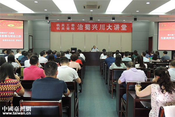 羅治平主任作專(zhuān)題講座。(圖片來(lái)源:四川省臺(tái)辦)
