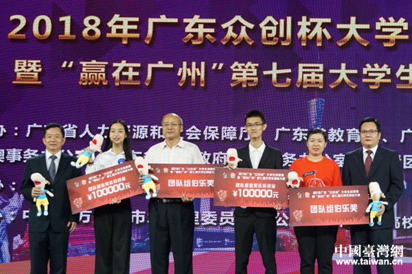 中國(guó)臺(tái)灣網(wǎng)9月27日廣州訊 9月21日,由廣東省人力資源社會(huì)保障廳、廣東省臺(tái)辦等部門(mén)聯(lián)合舉辦的2018年廣東“眾創(chuàng)杯”創(chuàng)業(yè)創(chuàng)新大賽之大學(xué)生啟航賽總決賽在廣州圓滿收官,包括臺(tái)灣青年項(xiàng)目在內(nèi)的獲獎(jiǎng)名單已全部出爐。廣東省臺(tái)辦副主任方濤出席頒獎(jiǎng)儀式,并與廣東省人社廳副廳長(zhǎng)李新全等有關(guān)單位的負(fù)責(zé)同志共同為獲獎(jiǎng)項(xiàng)目頒獎(jiǎng)。