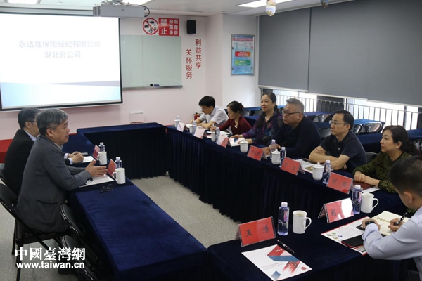 武漢市臺辦在永達理保險公司與企業(yè)負責(zé)人溝通交流。(武漢市臺辦 王煉 攝)
