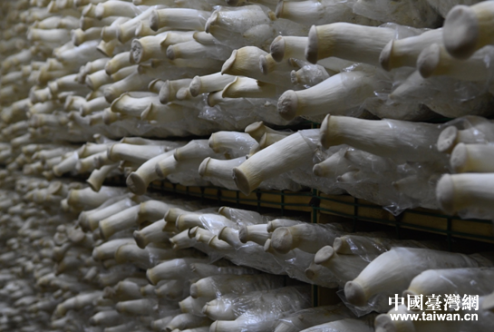 整齊排列的杏鮑菇貨架。(圖片來源:四川省臺(tái)辦)