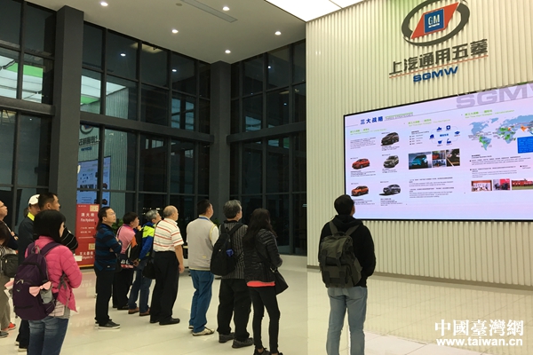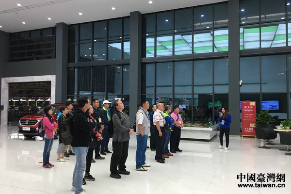 臺灣花蓮藍(lán)天退伍協(xié)會參觀上汽通用五菱汽車公司展廳。(圖片來源:玉林市臺辦)