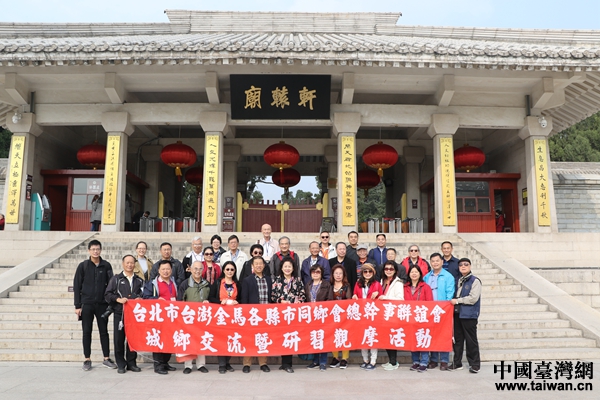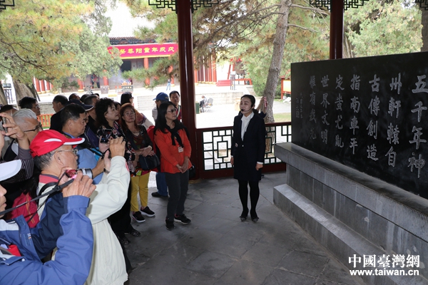 中國(guó)臺(tái)灣網(wǎng)10月18日西安訊 (記者 郜利敏)“公元一九四五年,日本帝國(guó)主義戰(zhàn)敗投降,臺(tái)灣光復(fù),回歸祖國(guó)。次年,臺(tái)灣全島士紳代表組成臺(tái)灣光復(fù)致敬團(tuán),先至南京,又飛西安,擬前往黃陵,告祭軒轅始祖……并祝愿祖國(guó)早日和平統(tǒng)一,我族繁衍昌盛,以彰祖德!痹邳S帝陵,臺(tái)北市臺(tái)澎金馬各縣市同鄉(xiāng)會(huì)總干事聯(lián)誼會(huì)參訪團(tuán)一行誦讀“臺(tái)灣光復(fù)致敬團(tuán)”祭黃帝陵文石碑碑文,深思?xì)v史、追思“人文始祖”。