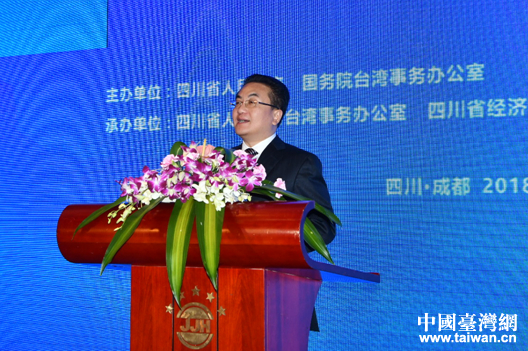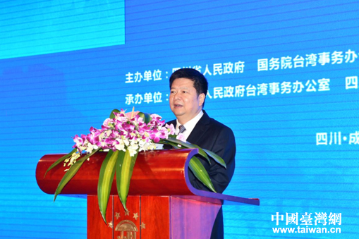 國務(wù)院臺辦副主任龍明彪致辭。(圖片來源:四川省臺辦)