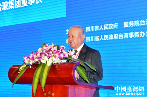 臺灣工商協(xié)進(jìn)會理事長、臺玻集團(tuán)董事長林伯豐致辭。(圖片來源:四川省臺辦)