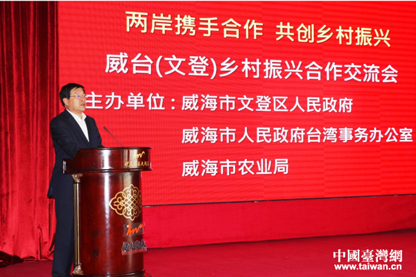 中國(guó)臺(tái)灣網(wǎng)10月22日威海訊 10月20日,威臺(tái)(文登)鄉(xiāng)村振興合作交流會(huì)在威海市文登區(qū)舉行。威海市副市長(zhǎng)高書良會(huì)見(jiàn)來(lái)威臺(tái)胞,出席交流會(huì)并致辭,文登區(qū)委書記吳宏飛出席交流會(huì)并致辭,威海市臺(tái)辦主任李英春主持交流會(huì)。臺(tái)灣工商建研會(huì)農(nóng)業(yè)委員會(huì)副主委、臺(tái)灣微鯨農(nóng)業(yè)科技股份有限公司董事長(zhǎng)陳國(guó)林,臺(tái)灣文創(chuàng)和非物質(zhì)文化遺產(chǎn)方面著名專家林三元,臺(tái)灣百人團(tuán)股份有限公司執(zhí)行長(zhǎng)、臺(tái)灣華人文化藝術(shù)聯(lián)盟執(zhí)行長(zhǎng)江宗鴻,臺(tái)灣微鯨農(nóng)業(yè)科技股份有限公司總經(jīng)理蔡玲霞,分別做了交流發(fā)言。