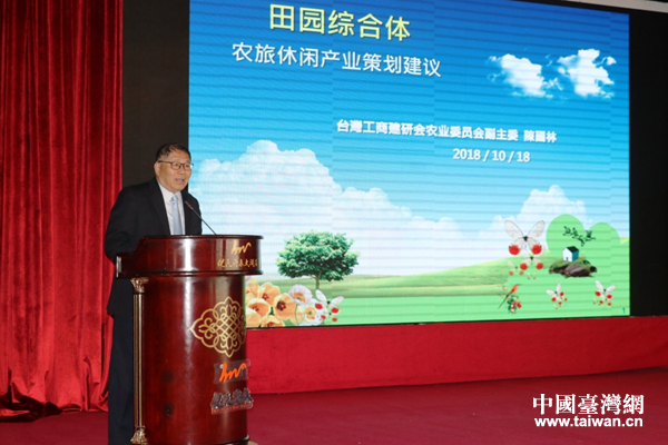 臺(tái)灣工商建研會(huì)農(nóng)業(yè)委員會(huì)副主委陳國(guó)林講話。(圖片來(lái)源:威海市臺(tái)辦)