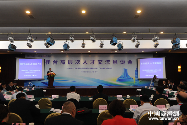 中國(guó)臺(tái)灣網(wǎng)10月14日南寧訊 10月22日,第十四屆桂臺(tái)經(jīng)貿(mào)文化合作論壇桂臺(tái)高層次人才交流懇談會(huì)在廣西南寧市召開。臺(tái)灣博士代表,廣西教育、人力資源社會(huì)保障和臺(tái)辦部門代表和廣西23所高校代表共約100人出席會(huì)議。