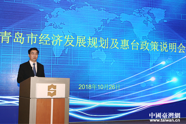 青島市政府副秘書長(zhǎng)萬建忠致辭。(圖片來源:青島市臺(tái)辦)