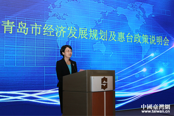 青島市臺(tái)辦方妍主任致辭。(圖片來源:青島市臺(tái)辦)