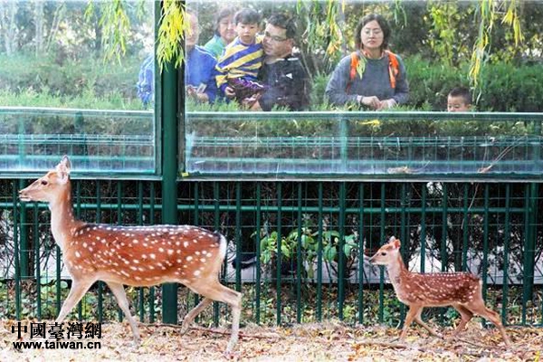 鹿媽媽“點(diǎn)點(diǎn)”帶著鹿寶寶“汀汀”。(圖片來源:威海市臺辦)