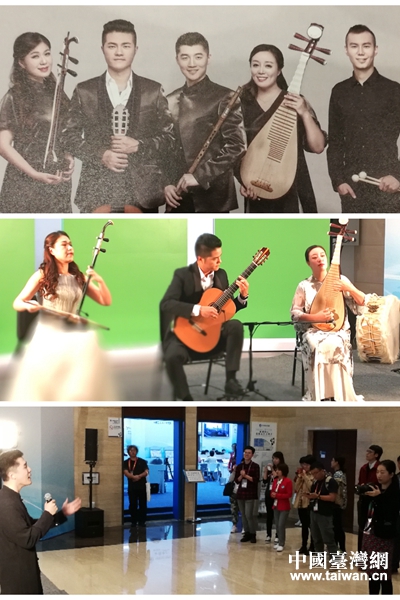 7日中午,恒星樂團的范曄、劉芬、翟鑫辰、戴勝華、木拉等演奏了元曲《月圓花好》(改編)、巴赫《康塔塔BWV147第十首》、昆曲曲牌《萬年歡》及江南小調、新疆民歌等,收到記者們的陣陣掌聲。(中國臺灣網上海市臺辦通訊員 常志康)