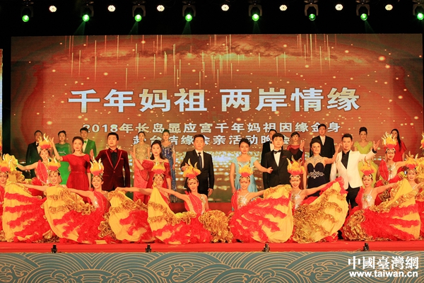 9月27日晚,“千年媽祖·兩岸情緣—2018年長島顯應(yīng)宮千年媽祖因緣金身赴臺結(jié)緣會親”活動晚會在長島明珠廣場成功舉辦。近千名海島居民、媽祖信眾到現(xiàn)場觀看。晚會在此次赴臺結(jié)緣會親活動宣傳片中盛大開場,女聲獨唱《媽祖頌》、舞蹈《娘娘賜燈》、《天佑之光》、《闖海漢子》等節(jié)目展現(xiàn)出媽祖民心安愿,福蔭盛世的場面;舞蹈《海島明珠》《漁家號子》《歡樂漁家》等節(jié)目展示了長島碧海藍天、旖旎的海景風光和海鮮美食的饕餮盛宴。精彩的晚會表演贏得了現(xiàn)場觀眾的陣陣掌聲。29日上午,媽祖金身順利抵達廟島顯應(yīng)宮并舉行了回鑾安坐儀式,圓滿完成了這“千年等一回”的盛大壯舉,為本次“2018年長島顯應(yīng)宮千年媽祖赴臺結(jié)緣會親”活動畫上圓滿句號。