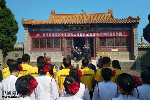中國臺灣網(wǎng)11月12日長島訊 為進一步發(fā)揮媽祖文化在“兩岸一家親”中的橋梁紐帶作用,增進兩岸同胞心靈契合,山東省煙臺市長島縣積極發(fā)揮省級海峽兩岸交流基地——廟島顯應(yīng)宮的交流平臺作用,全力打造對臺交流工作特色品牌,經(jīng)過精心籌備,在9月組織開展了一次凸顯膠東風情、長島特色,規(guī)模宏大、有影響力的赴臺媽祖文化交流活動——“2018年長島千年媽祖因緣金身赴臺結(jié)緣會親活動”。