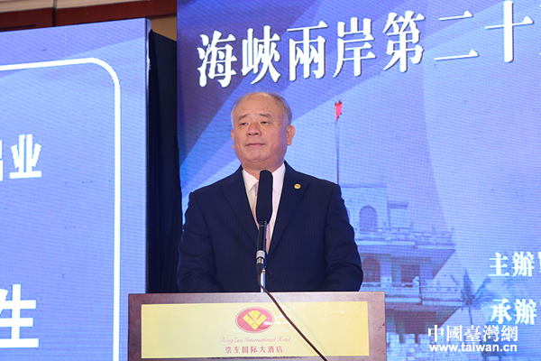 臺灣區(qū)照明燈具輸出業(yè)同業(yè)公會理事長黃明智出席會議并講話。(圖片來源:廣西崇左市臺辦)