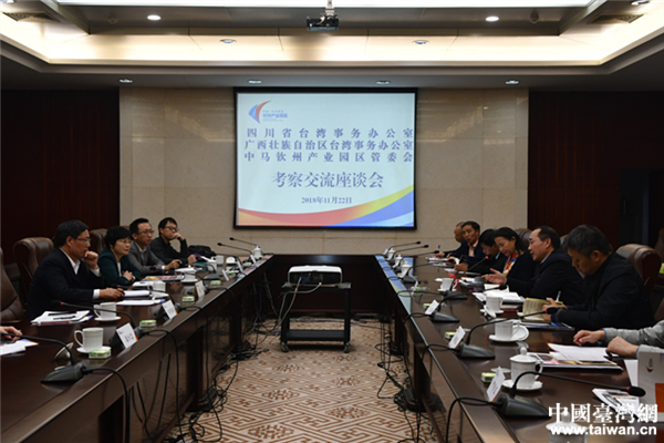 考察組與欽州產(chǎn)業(yè)園交流座談。(圖片來(lái)源:四川臺(tái)辦)
