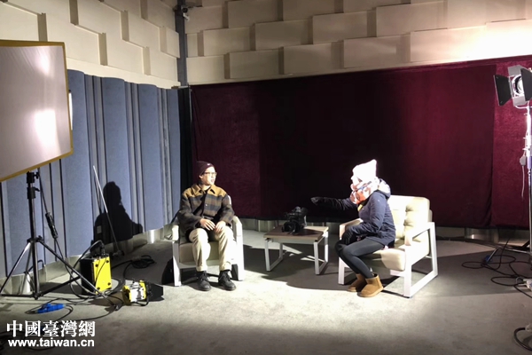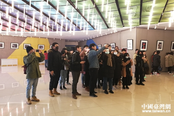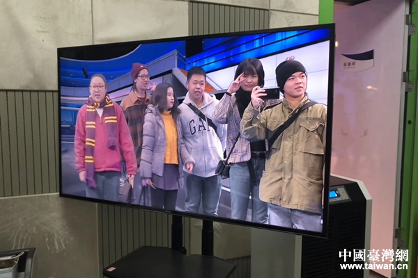 在學(xué)生的帶領(lǐng)下參觀影視藝術(shù)學(xué)院。(中國臺灣網(wǎng) 張露露 攝)