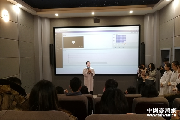 在新聞傳播學(xué)院新建成的生物感知智能傳媒實驗室,參訪團成員觀看學(xué)生現(xiàn)場配音的動畫小短片,并進(jìn)行了一場生物傳感實驗課!案兄夹g(shù)”作為人工智能驅(qū)動技術(shù)之一,具有舉足輕重的地位。而科技與藝術(shù)的“跨界”組合實驗,引起了參訪團的興趣,兩岸師生就如何在影視方面正確應(yīng)用與看待人工智能等相關(guān)問題進(jìn)行了深入的交流探討。