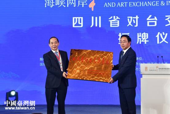 四川省臺(tái)辦主任羅治平授牌。(圖片來(lái)源:四川省臺(tái)辦)