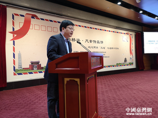 2018年12月15日,“鴻雁架橋梁·尺素傳真情——紀(jì)念兩岸‘三通’之通郵十周年”活動12月15日在北京臺灣會館舉行。活動由北京市臺灣同胞聯(lián)誼會和中國郵政集團(tuán)北京市分公司聯(lián)合主辦,通過發(fā)行兩岸通郵十周年紀(jì)念郵票和郵封、舉行海峽兩岸通郵歷史展覽等紀(jì)念活動和郵史展覽講述兩岸通郵歷史故事,娓娓道來濃濃的兩岸親情,紀(jì)念兩岸通郵十周年。