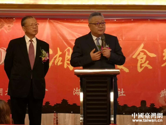 中國(guó)臺(tái)灣網(wǎng)12月17日臺(tái)北訊 12月16日中午,由湖北省臺(tái)辦、武漢市臺(tái)辦、武漢市商學(xué)院、湖北省黃梅戲劇院支持,臺(tái)北市湖北同鄉(xiāng)會(huì)、湖北文獻(xiàn)社、臺(tái)灣武漢市同鄉(xiāng)會(huì)共同主辦的2018年“湖北·武漢美食饗宴”在臺(tái)北市天成大飯店拉開序幕。300余名在臺(tái)湖北鄉(xiāng)親歡聚一堂,共同品味湖北武漢親人帶來的地道湖北菜肴和原汁原味的湖北特色節(jié)目。
