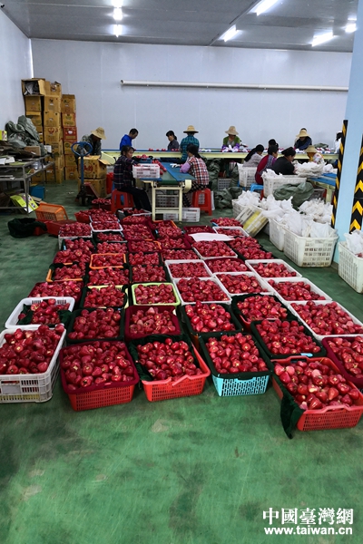 臺(tái)資農(nóng)業(yè)企業(yè)海南金德豐農(nóng)業(yè)開發(fā)有限公司的蓮霧分級(jí)包裝車間。(圖片來源:海南省臺(tái)辦)