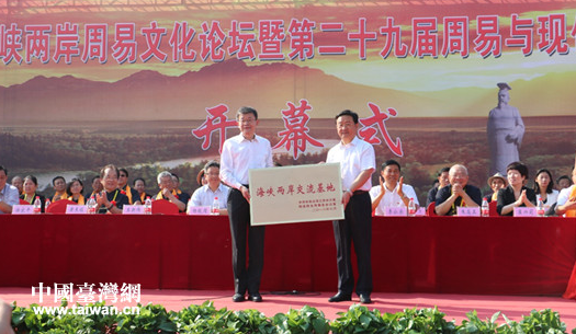 9月11日,2018海峽兩岸周易文化論壇期間,國臺辦交流局局長黃文濤宣讀中央臺辦、國臺辦關(guān)于批準(zhǔn)安陽羑里城為海峽兩岸交流基地的決定,并向羑里城授“海峽兩岸交流基地”牌匾。