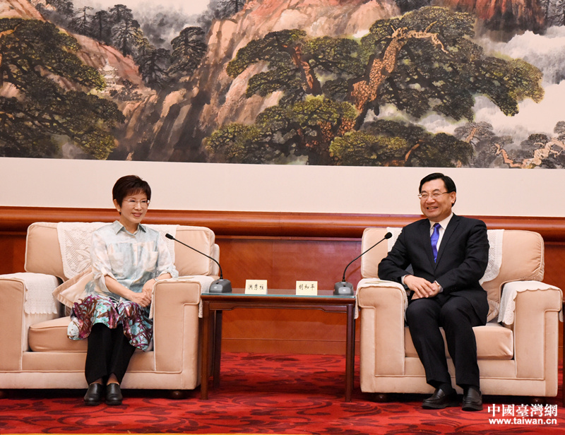 2018年4月2日,陜西省委書記胡和平在西安會見來陜出席戊戌年清明公祭軒轅黃帝典禮的中國國民黨前主席洪秀柱。(圖片來源:陜西省臺辦)