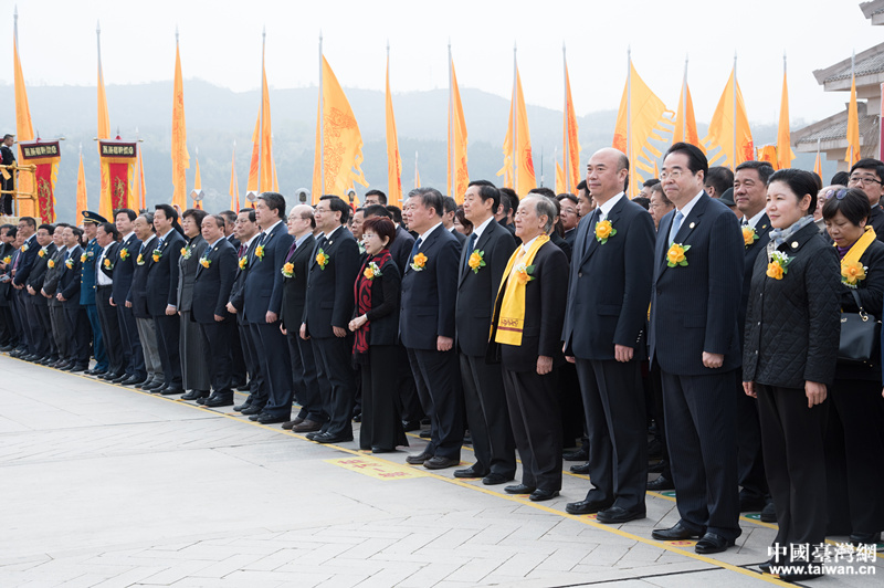 2018年4月5日,戊戌年清明公祭軒轅黃帝典禮在陜西省黃陵縣舉行,中國國民黨前主席洪秀柱、新黨主席郁慕明等200多名臺灣各界同胞出席公祭典禮。(圖片來源:陜西省臺辦)