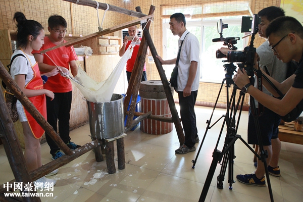 8月20日至22日,“回望齊魯好風(fēng)光”魯臺(tái)新聞媒體記者聯(lián)合采風(fēng)活動(dòng)在青采訪(fǎng),圖為兩岸記者在青島“二月二”生態(tài)觀光農(nóng)場(chǎng)采訪(fǎng)體驗(yàn)豆腐制作過(guò)程。(圖片來(lái)源:青島市臺(tái)辦)