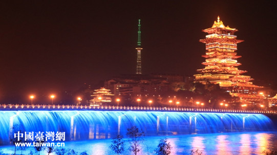攝制組拍攝的綿陽城市夜景。(圖片來源:四川省臺辦)