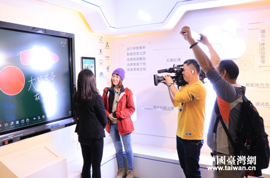攝制組在四川長虹展示廳采訪。(圖片來源:四川省臺辦)