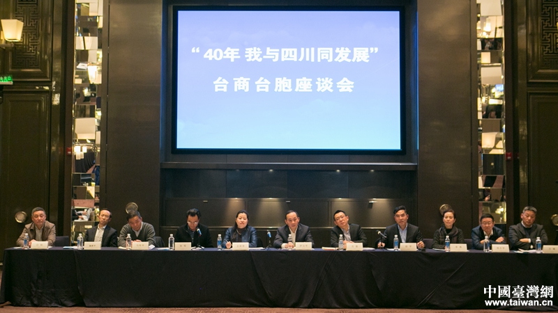 四川省臺辦、省商務(wù)廳、省發(fā)改委、省市場監(jiān)督管理局、省經(jīng)濟合作局、國家稅務(wù)總局四川省稅務(wù)局等相關(guān)負(fù)責(zé)人參加座談會。(圖片來源:四川省臺辦)