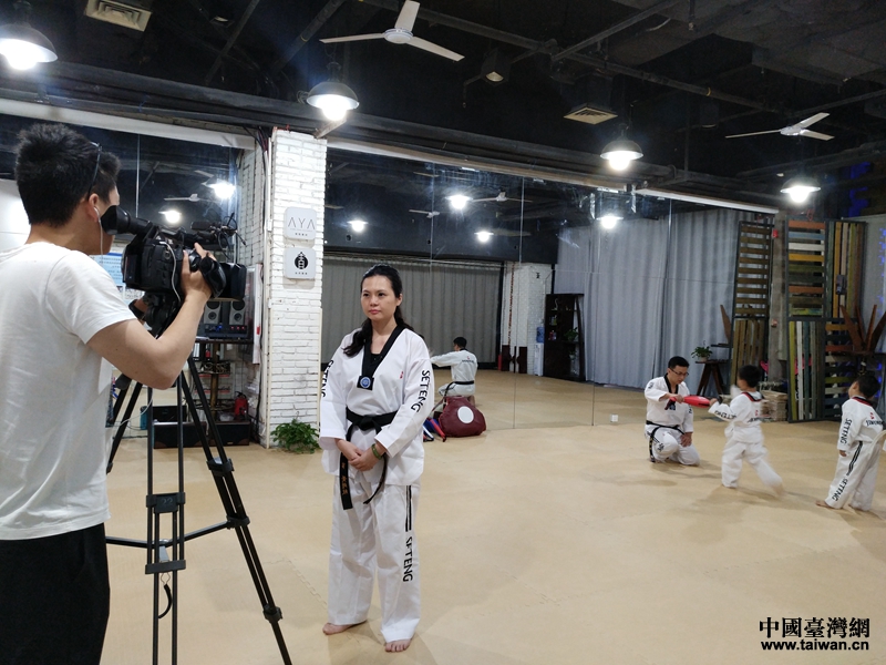 青年臺商黃靖紋接受福建海峽衛(wèi)視電視專訪。(圖片來源:廣西南寧市臺辦)