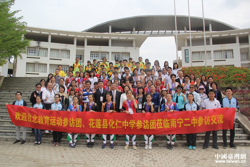 臺北教育運(yùn)動訪問團(tuán)、花蓮化仁中學(xué)訪問團(tuán)到南寧二中參訪交流。(圖片來源:廣西南寧市臺辦)