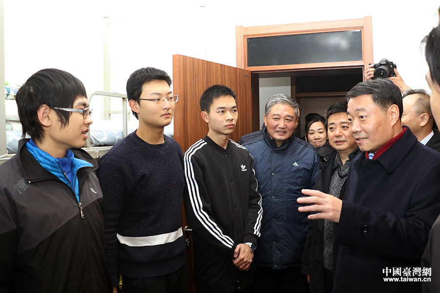 陳元豐到南開大學學生宿舍看望慰問臺生。(中國臺灣網 陳佳慧 攝)