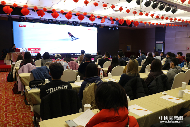 當(dāng)天下午,為了讓臺灣學(xué)生更加了解冬奧會,張家口市籌辦冬奧會領(lǐng)導(dǎo)小組辦公室市場處楊責(zé)坤作了冬奧會為主題的講解,詳細(xì)介紹了關(guān)于北京冬奧會申辦歷程、籌建情況以及冬奧會和冬殘奧會知識等,并科普了滑雪等相關(guān)運動知識。