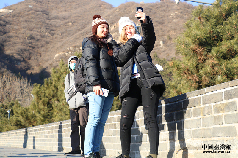 臺灣學(xué)生游覽長城并拍照留念。(中國臺灣網(wǎng) 郜利敏 攝)