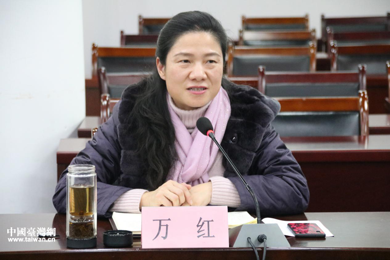 黃陂區(qū)人民政府副區(qū)長萬紅出席座談會(huì)并講話。(圖片來源:武漢市臺(tái)辦)