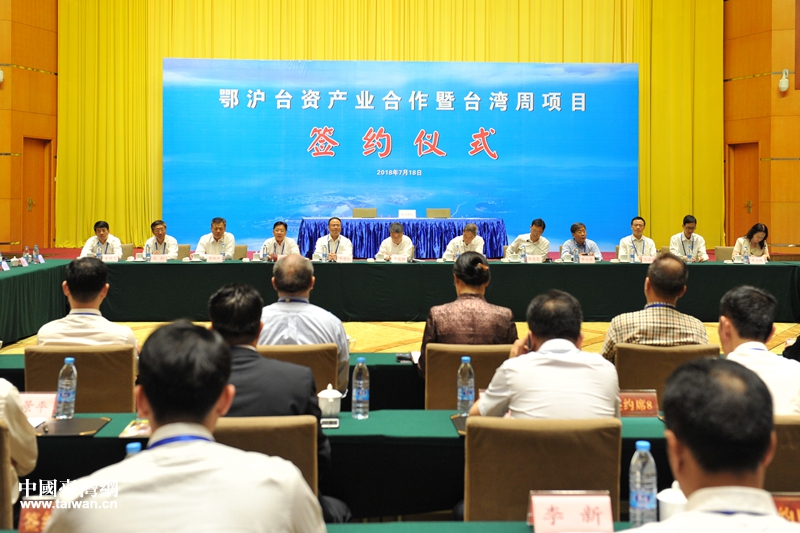 鄂滬臺(tái)資產(chǎn)業(yè)合作暨第十五屆湖北·武漢臺(tái)灣周項(xiàng)目簽約儀式。(圖片來源:湖北省臺(tái)辦)