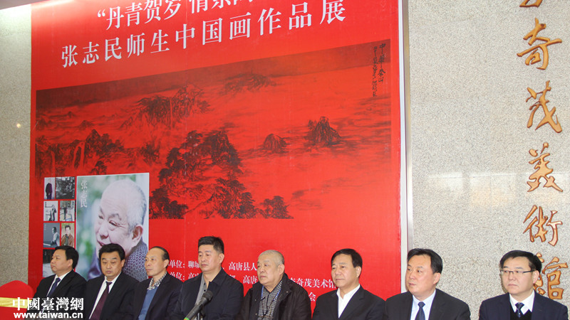 中國(guó)臺(tái)灣網(wǎng)1月29日高唐訊 為活躍高唐縣人民群眾春節(jié)期間的文化生活,進(jìn)一步豐富海峽兩岸文化交流基地內(nèi)涵,“丹青賀歲 情系兩岸——張志民師生國(guó)畫作品展”于1月28日在李奇茂美術(shù)館開展。聊城市政協(xié)港澳臺(tái)僑和外事工作委員會(huì)主任孫光木,高唐縣委書記張穎,聊城市委宣傳部副部長(zhǎng)趙昌軍,聊城市臺(tái)辦副主任陶新鎮(zhèn),高唐縣委副書記孫榮軍,山東藝術(shù)學(xué)院原院長(zhǎng)、山東省文聯(lián)副主席、山東省美術(shù)家協(xié)會(huì)名譽(yù)主席、中華兩岸文學(xué)藝術(shù)研究院院長(zhǎng)張志民等出席了開展儀式。