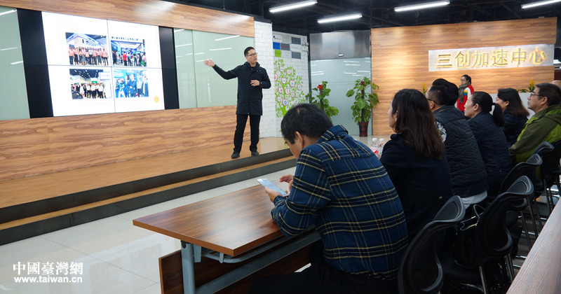 陳昱夫介紹“三創(chuàng)加速中心”扶持臺(tái)灣青年創(chuàng)業(yè)的情況。(圖片來(lái)源:廣西南寧市臺(tái)辦)