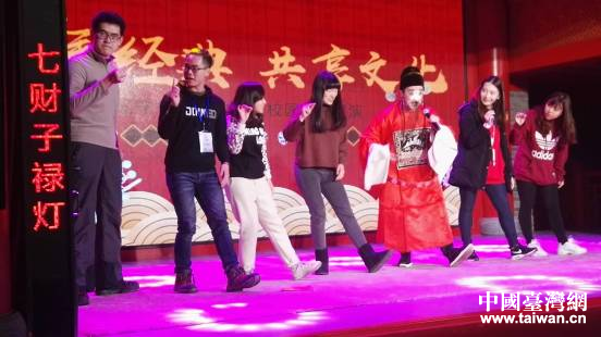 臺灣學生模仿京劇“丑角”。(圖片來源:沈陽市臺辦)