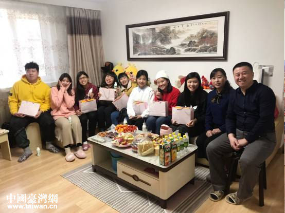 在“走進家庭、走進社區(qū)”環(huán)節(jié),沈陽的同學們邀請臺灣的學伴到自己家中做客,準備了豐盛的餐點、水果,還有當?shù)氐奶禺a、紀念品等作為禮物。沈陽籍陸生朱仕博已經(jīng)第三次參加研習營活動了,這次他知道同組的世新大學的劉宜翎同學生日是在活動期間,特別準備一個生日蛋糕,讓劉宜翎同學非常感動。朱仕博說:“在臺灣讀書的經(jīng)歷讓我與他們有許多共同話題。每次參加研習營活動,我最開心的事情就是能夠真誠地結交下許多新朋友,并且能經(jīng)常小聚保持熱絡聯(lián)系,希望我們的友誼地久天長!眮碜允佬麓髮W的張雨晴說:“我喜歡行程中有沈陽學伴的加入,可以結交許多新朋友,一起互相學習,交流沈臺的差異,還能去他們的家中做客,看看他們的真實生活、經(jīng)歷,深入體驗當?shù)孛袼孜幕、風土人情,給我留下許多深刻美好的回憶!”